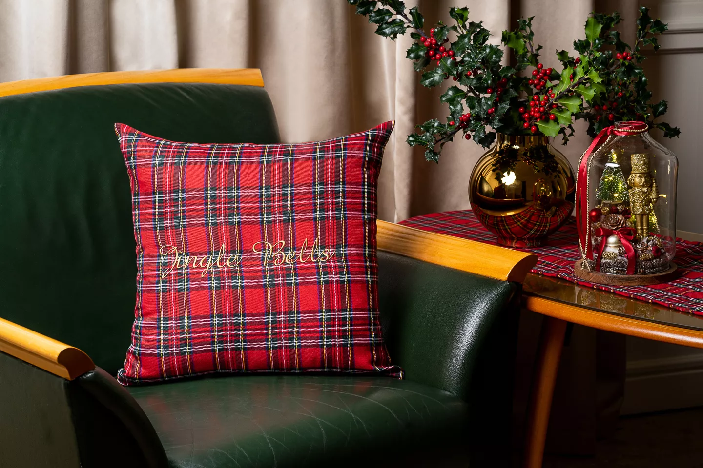 A párna ugyenezen skótkockás alapanyagon készült HOLLY JOLLY hímzett díszpárnával együtt is megvásárolható!
