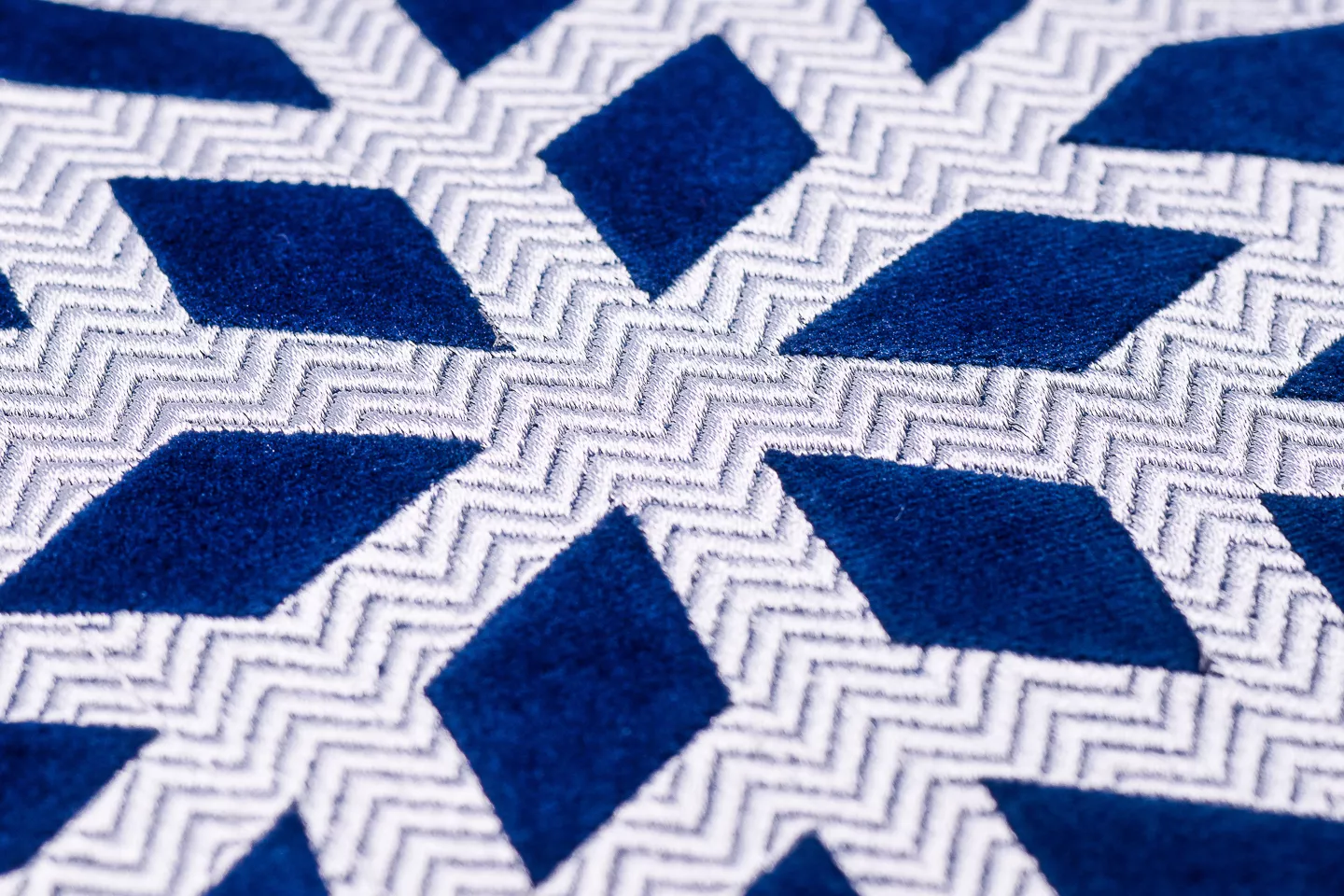 – alapanyag típusa, színe: 100% poliészter, bársony (anyagában fényes, minta nélküli), sötétkék. Minőség: I. osztály