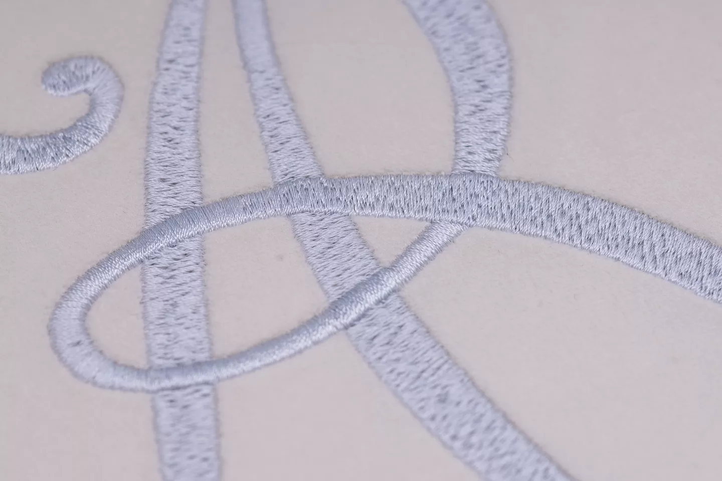 – hímzésminta típusa, színe: „AR” monogram, ezüst