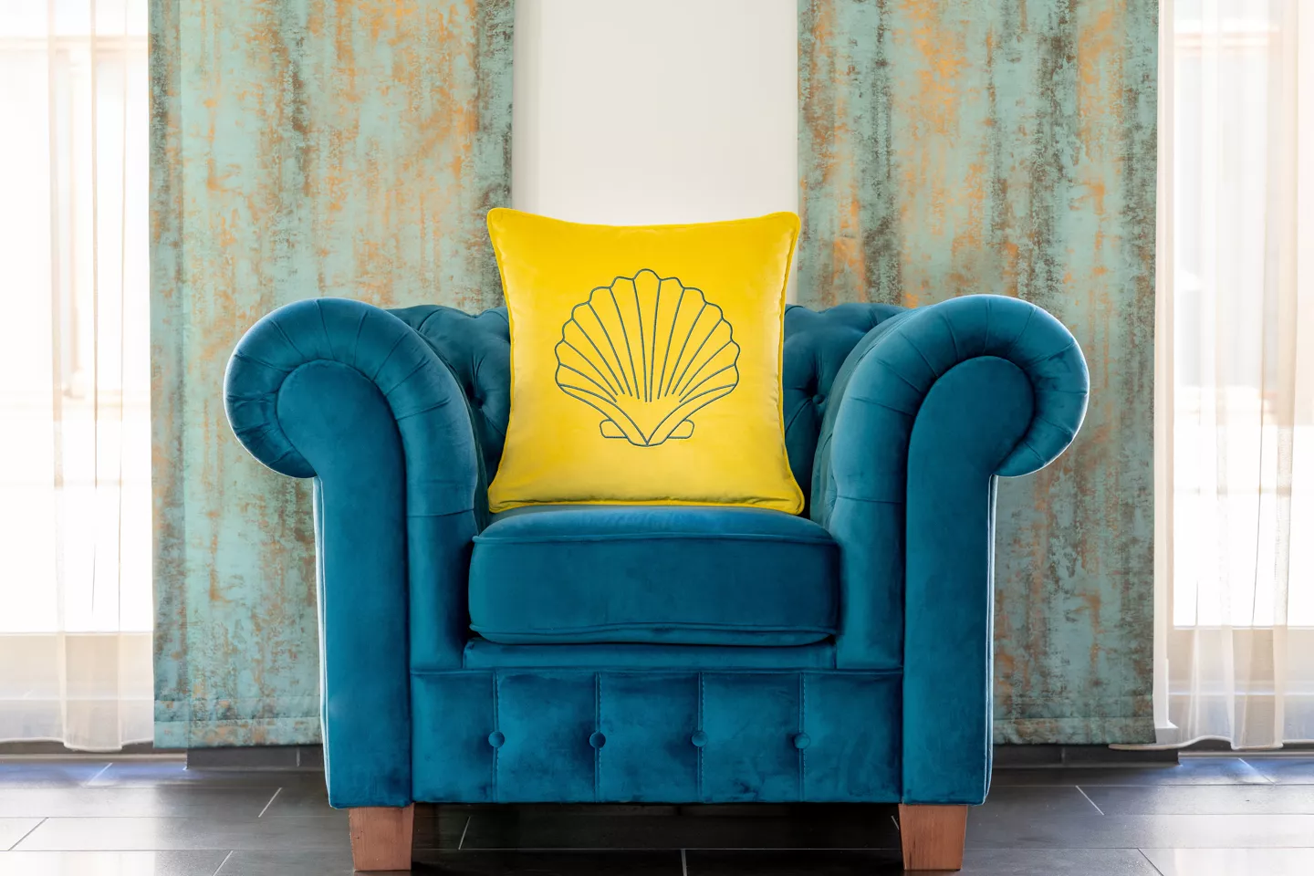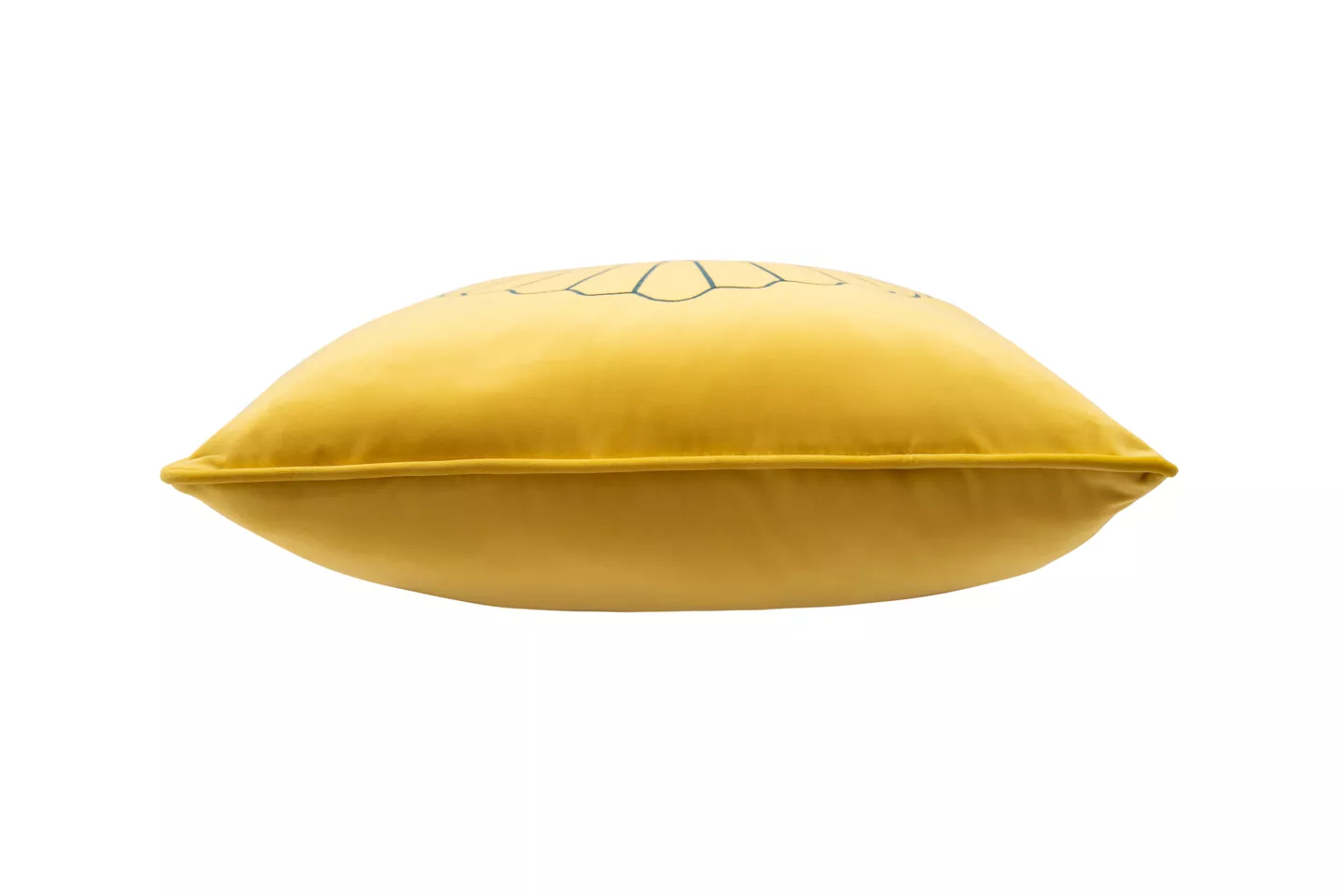 – alapanyag típusa, színe: 100% poliészter, bársony (anyagában fényes, minta nélküli), napsárga. Minőség: I. osztály. A díszpárnahuzat a szélein az alapanyagával megegyező, elegáns peremezéssel van ellátva.