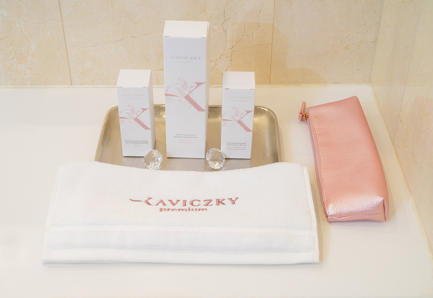 – hímzésminta típusa, színe: „Kaviczky Premium” logó minta, rose gold színű