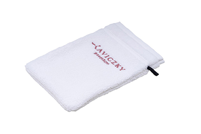 – fürdőkesztyű alapanyagának típusa, színe: 100% pamut elegáns velúr bordűrrel, puha tapintású, prémium, osztrák gyártású, VEGÁN, magas nedvszívó képességű, dermatológiailag tesztelt, fehér színű.