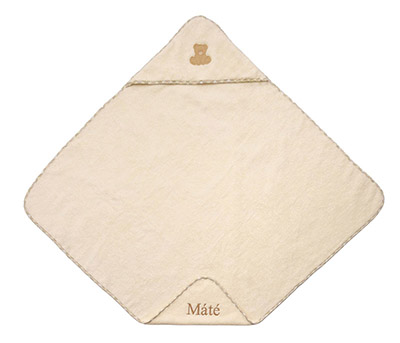 – törölköző alapanyagának típusa, színe: legkiválóbb minőségű 100% mikropamut, puha tapintású, prémium, osztrák gyártású, magas nedvszívó képességű, dermatológiailag tesztelt, krém színű. Kellemes tapintásának köszönhetően melegséget kölcsönöz a gyermekeknek. A törölköző OEKO- TEX made in Green tanúsítvánnyal rendelkezik, ezáltal gyermekek számára kiválóan alkalmas.