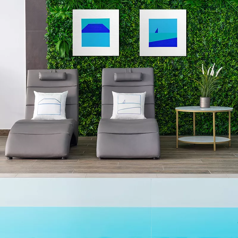 Magas strapabírású, prémium UV- víz- tengeri sós víz- klórálló, penészgátló bevonattal rendelkező fehér színű textilbőr, illetve akril (STANDARD 100 by OEKOTEX®) alapanyagból lettek elkészítve, ezáltal kültérre, hajókra, vitorlásokra is tökéletesen használható, kényelmes darabok.