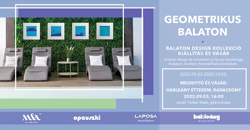 A Balaton Design Kollekciónkat először a badacsonyi Hableány Étteremben (8261, Badacsonytomaj, Park u. 26.) fogjuk bemutatni „Geometrikus Balaton” címmel, örömmel várunk minden kedves érdeklődőt szeptember 3-án (szombaton) 16:00-tól a jó hangulatú megnyitóra- és vásárra.