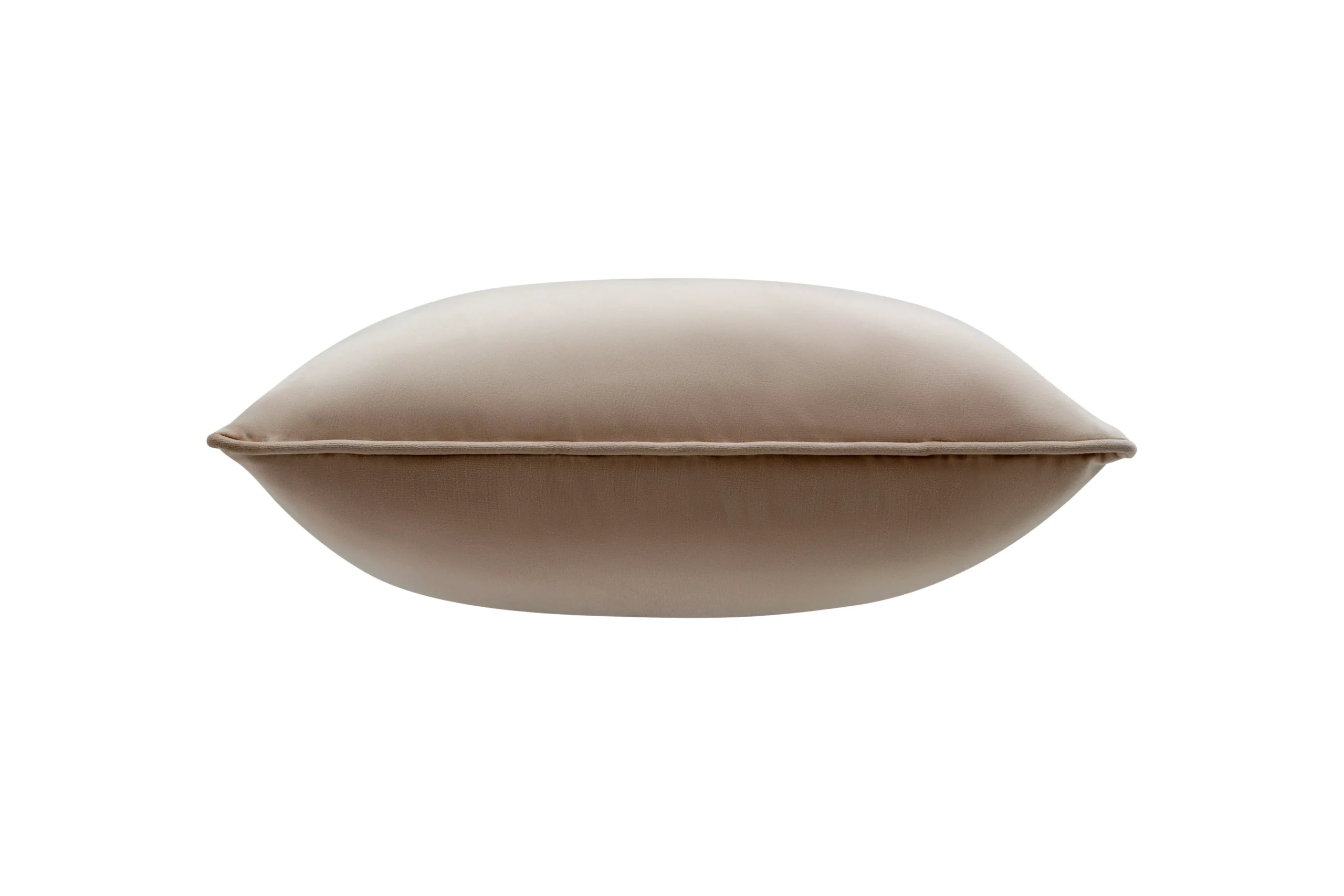 – alapanyag típusa, színe: 100% poliészter, bársony (anyagában fényes, minta nélküli), világos barnásszürke. Minőség: I. osztály. A díszpárnahuzat a szélein az alapanyagával megegyező, elegáns peremezéssel van ellátva.